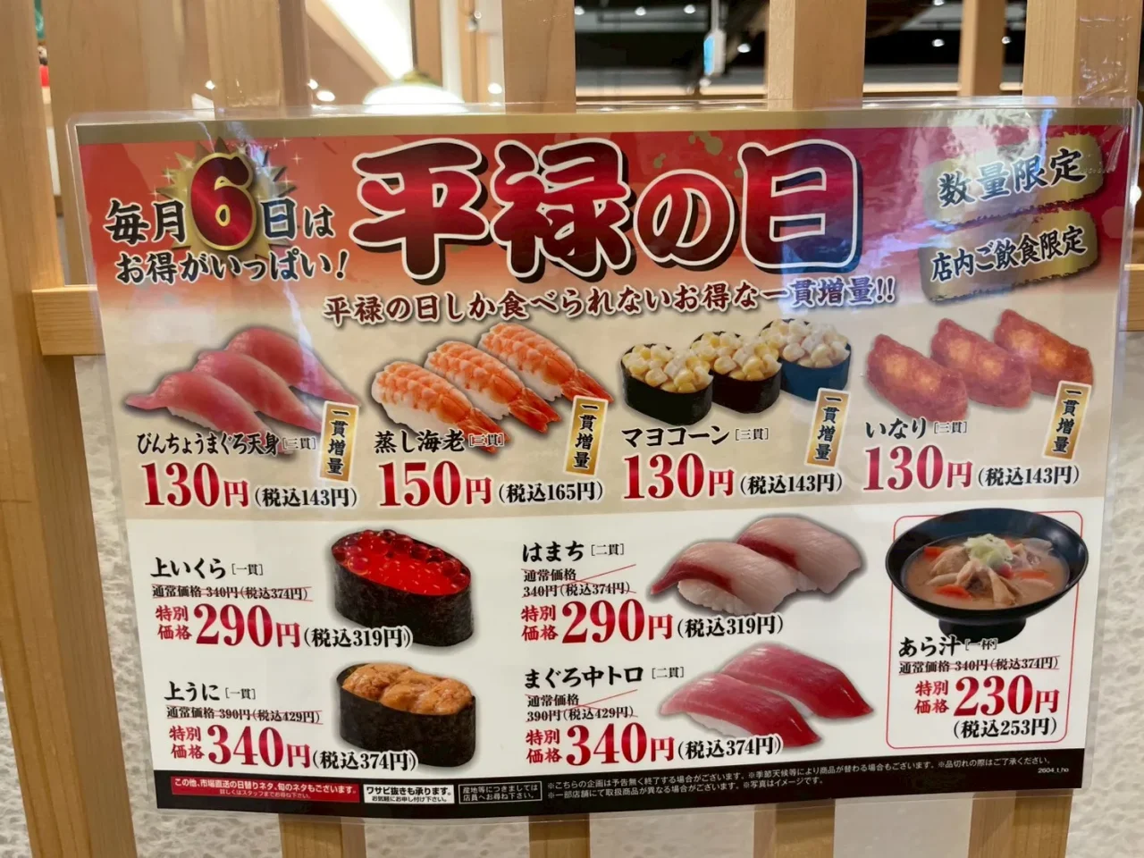 毎月6日は「平禄の日」として、人気メニューが特別価格になるスペシャルデーなんです。