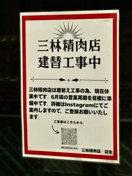 スポンサーリンク 【青葉区】文化横丁に新『三林精肉店』の建物が明らかになってきたみたい。 仙台の開店・閉店 X Facebook はてブ LINE 2026.04.29 いかがお過ごしですか、nittaです。 仙台市青葉区の文化横丁で建設中の新『三林精肉店』の建物が明らかになってきたみたいです。 建物の外観。建物は3階建。3階には黒い建物とは別に、高圧受電設備のキュービクルが設置されています。 建物は『(仮称)文化横丁ビル』として、2階部分をテナントエリアとして供用されるみたい。 焼肉店の営業再開とともに、新たな店舗の出店が注目されます。 それでは。